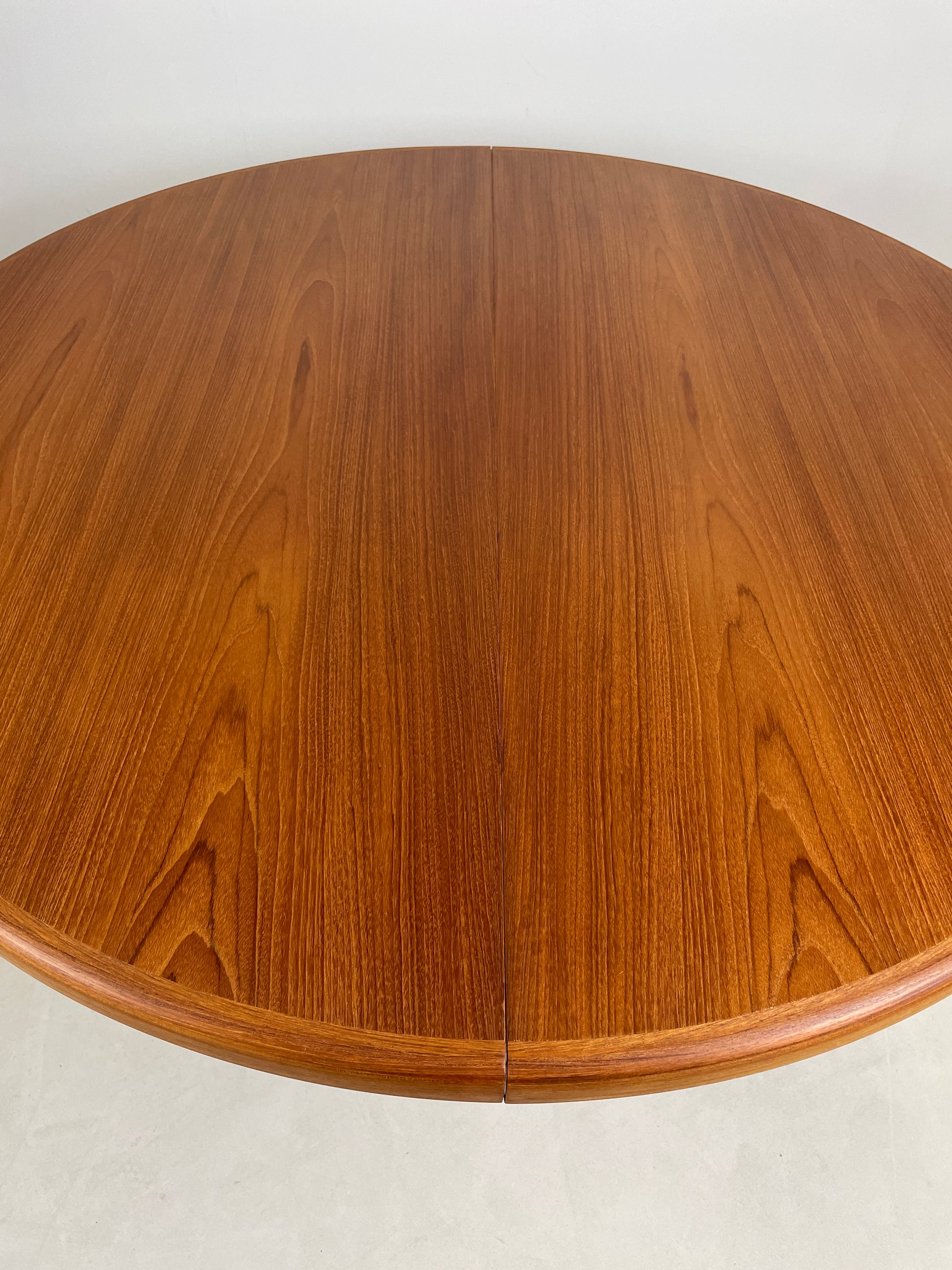 DANISH ROUND PEDESTAL DINING TABLE IN TEAK // SEATS 4 - 10