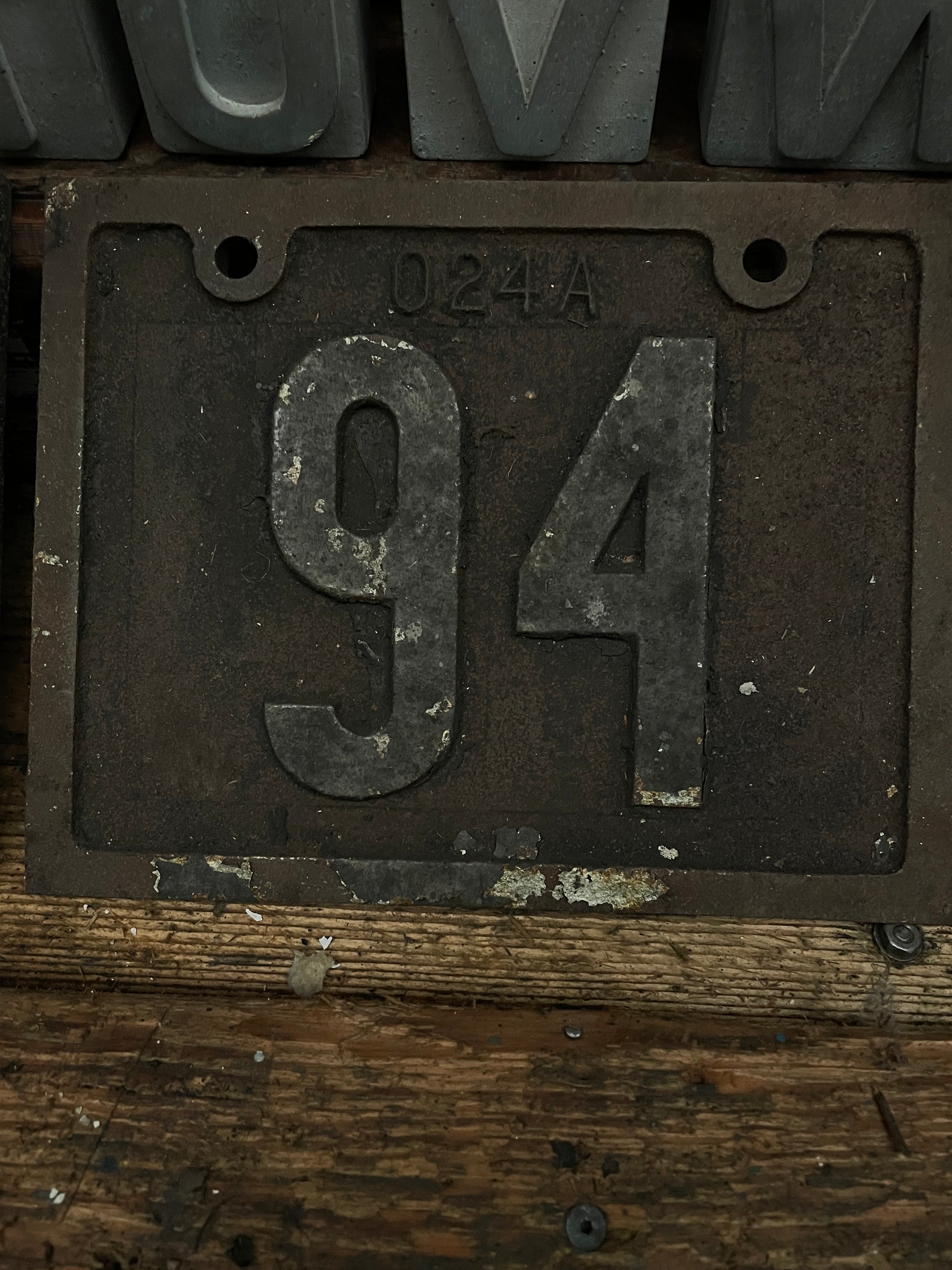 ORIGINAL CAST IRON MACHINE DOOR NUMBER PLAQUE No 94