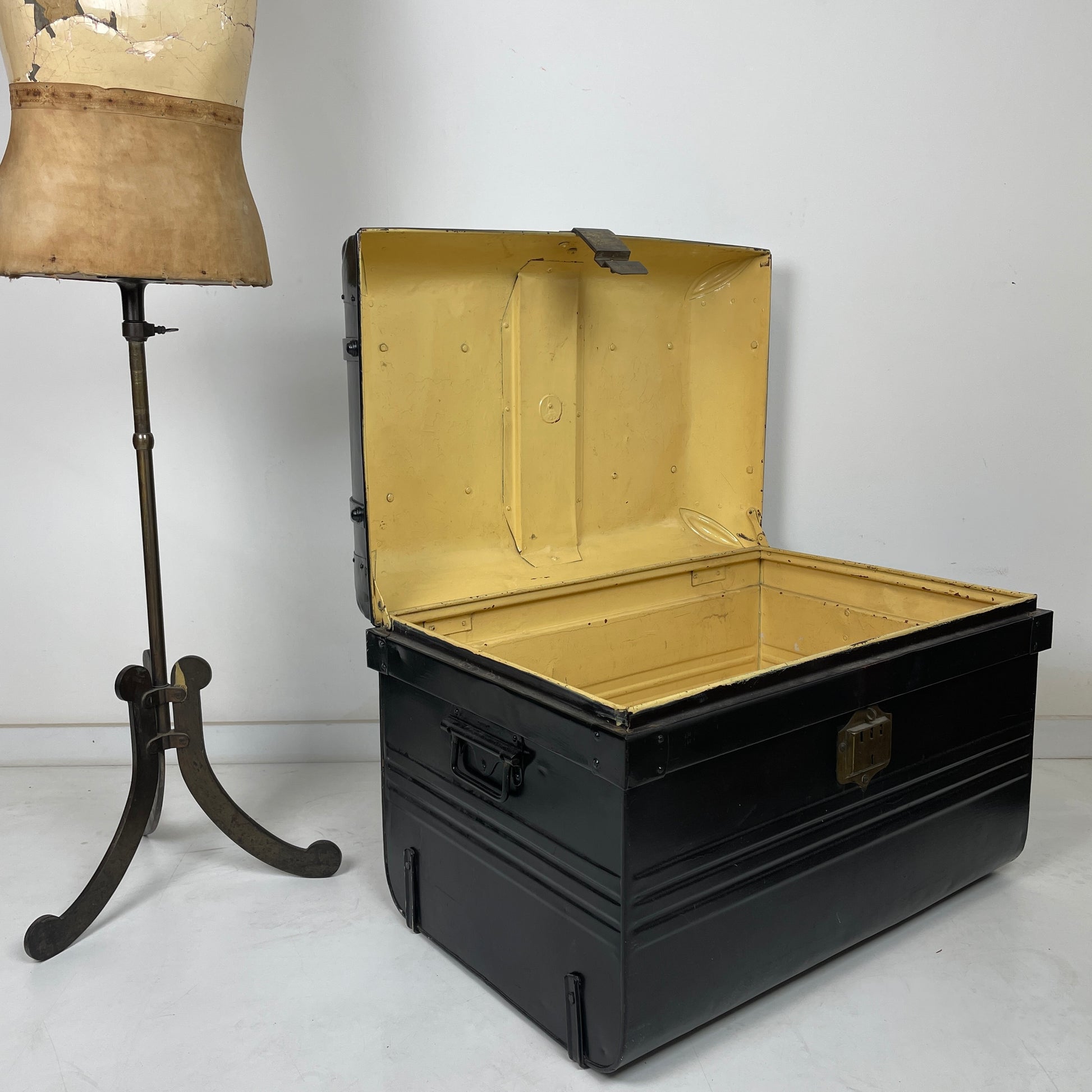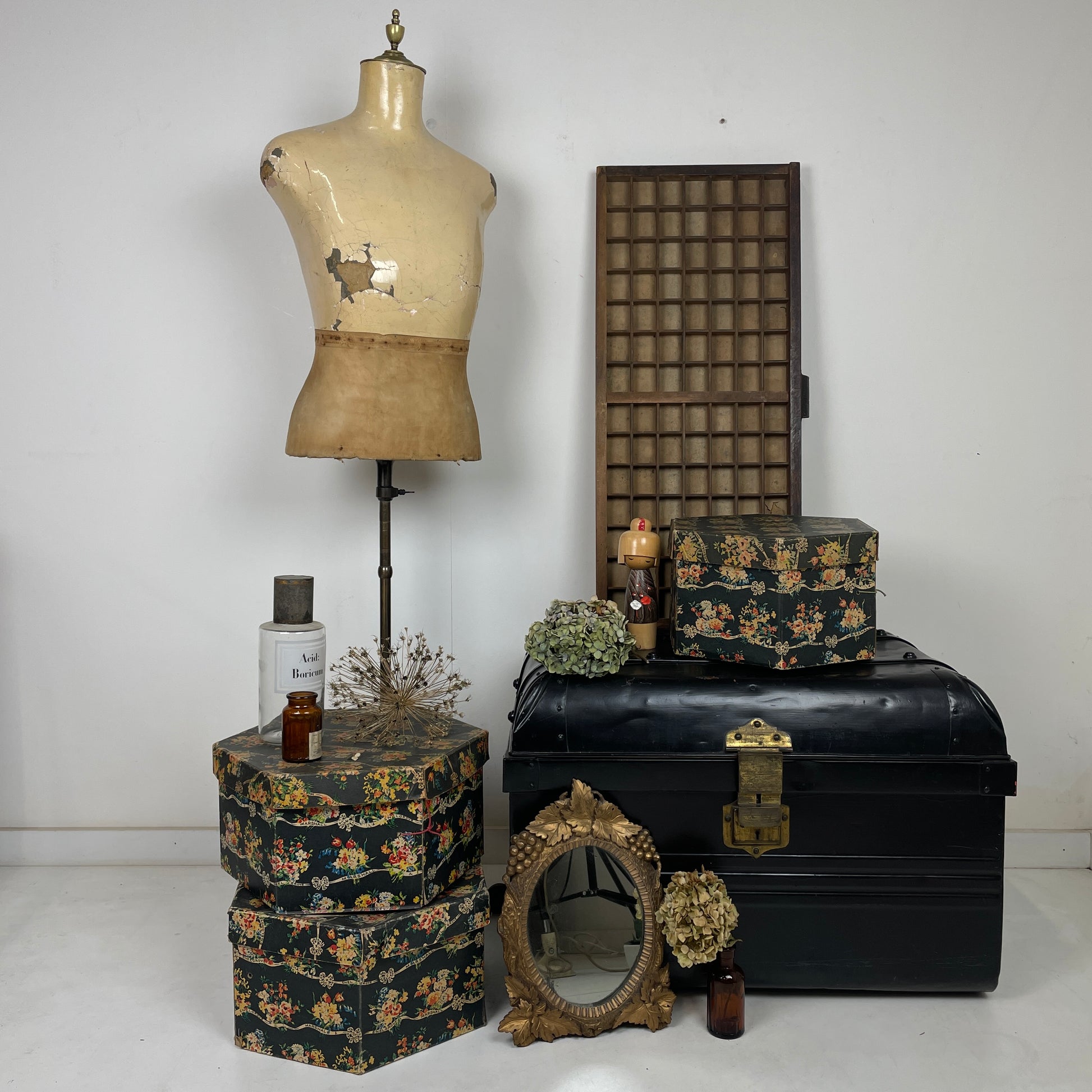 Age, use and wear have given this well loved Pollard of London mannequin - It has a great decorative look with original brass finial and adjustable metal stand. Expect chippy paint, wear and a cracks to the body. See the photos before making your purchase. She’s a wonderful decorative piece that will work well in an interior or shop.