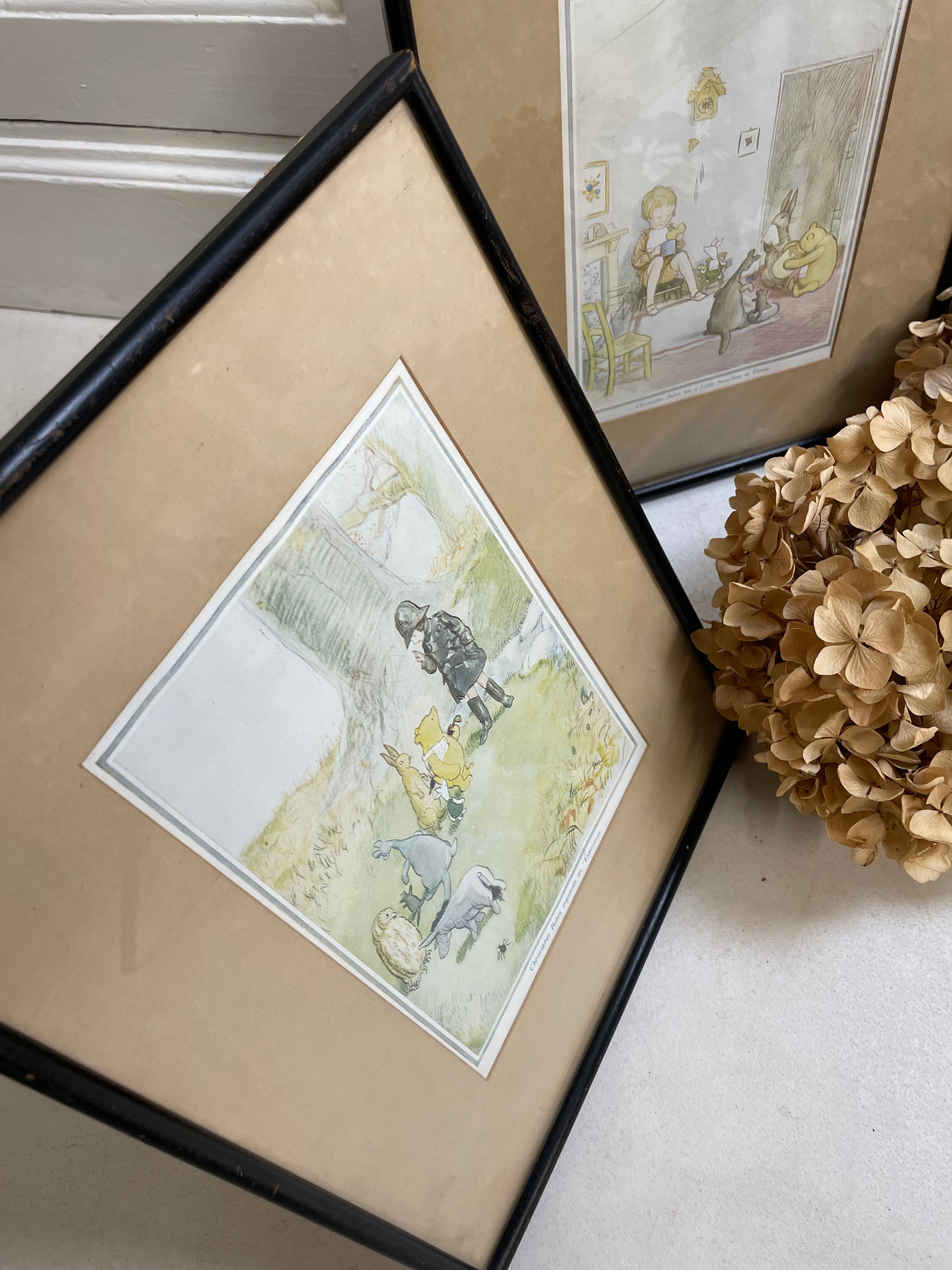 Two early prints featuring Christopher Robin, and his friends Winnie the Pooh, Piglet, Rabbit and many others. Perfect for the nursery.