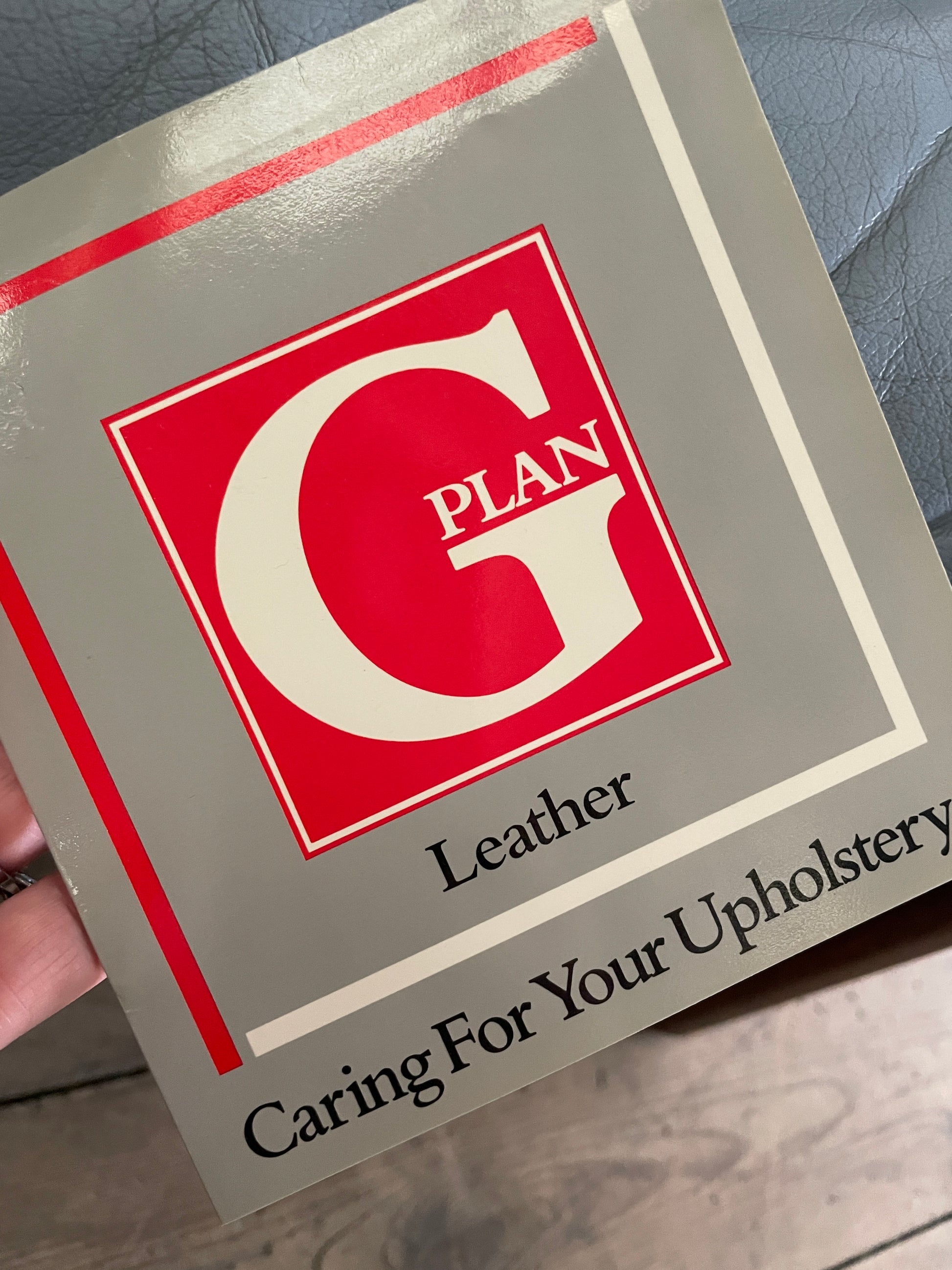 Original GPLAN labels and fire labels are all still attached. There are the odd small marks as expected if we are been fussy, with the main mark to the footstool. The leather has aged in places but is thick good quality leather. We suspect the customer chose this colour as you’ll be hard pushed to find one in this blue.