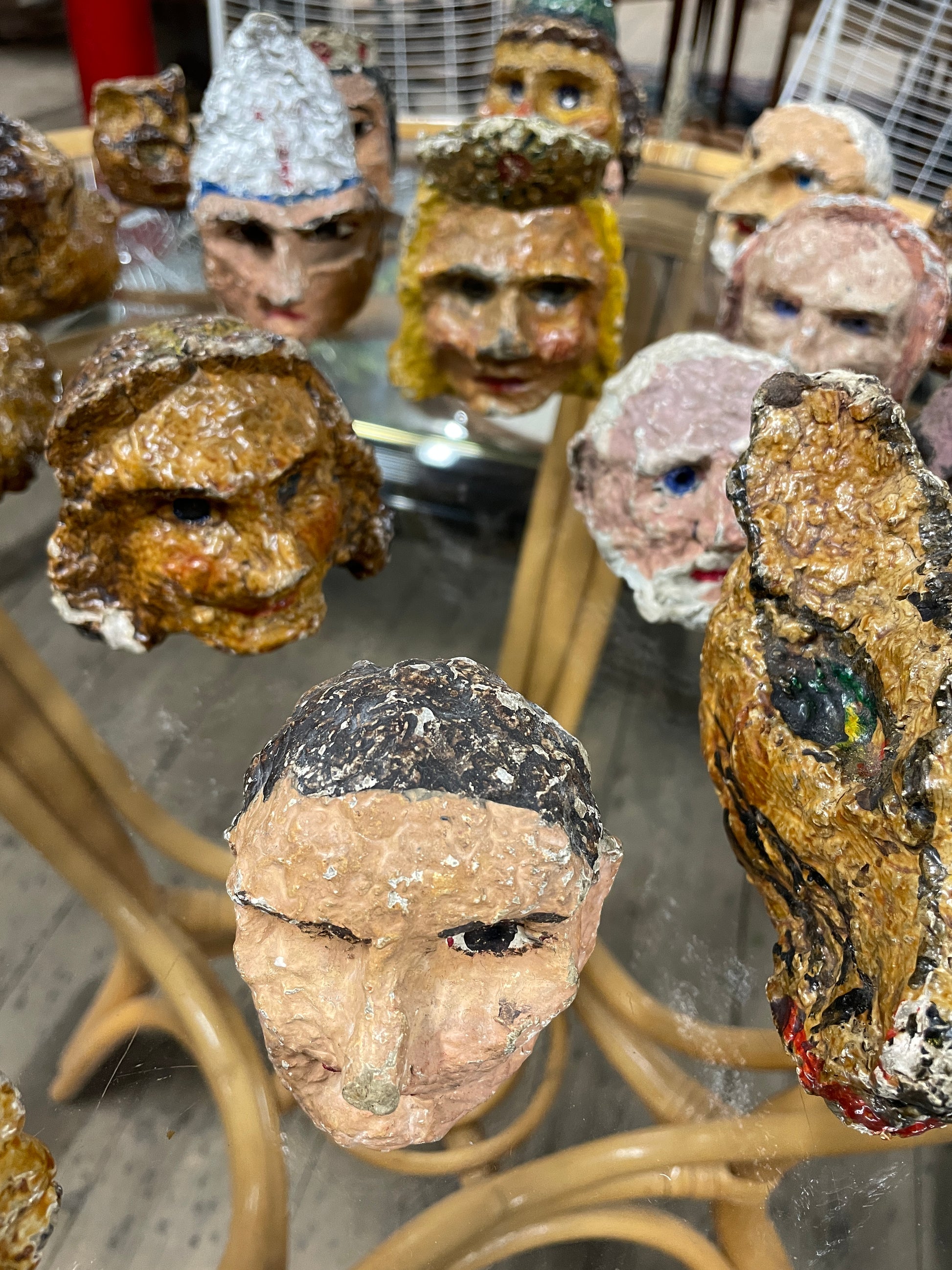 Vintage Papier-mâché puppet head from a full set of mainly male characters circa 1960s. Each hand painted with knocks, and chips. Hole under base to fit finger.